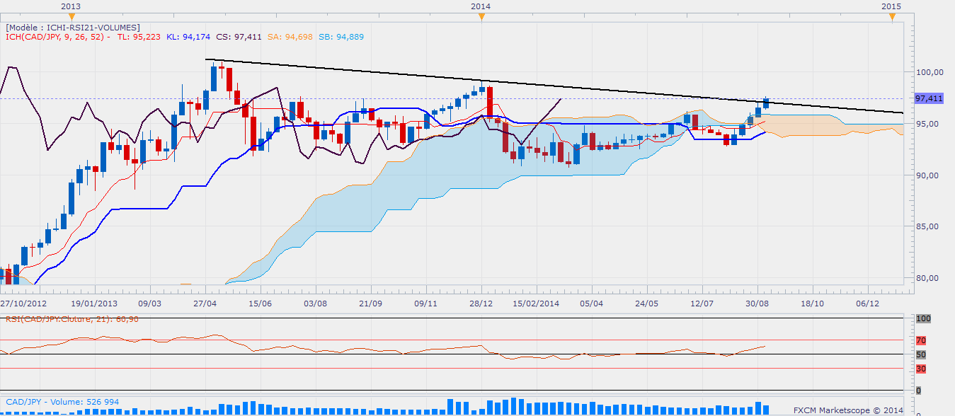 Superbe rebond de chikou sur sa SSB. On casse, on reveint tester la zone de cassure et on s'envole ? Peut être .....