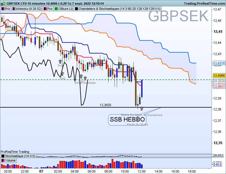 - rebond immédiat avec chandelier de retournement en M15 au niveau de la SSB hebdo