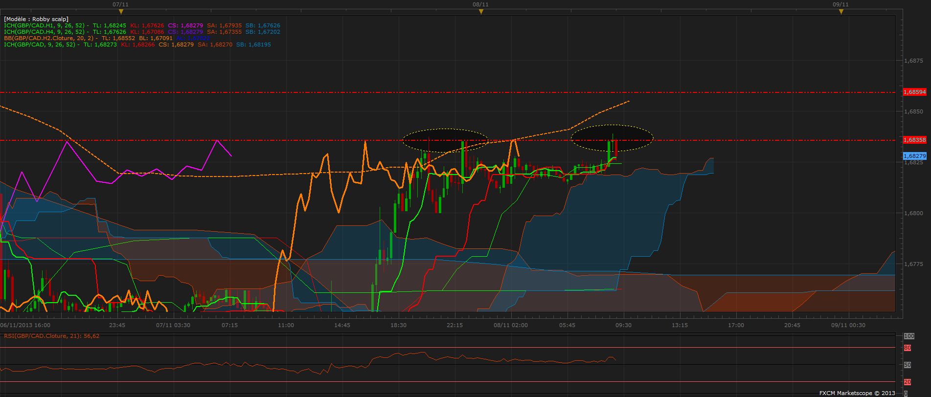 Dans l'ellipse bleu le pullback sur tenkan H1, ici sur kijun.