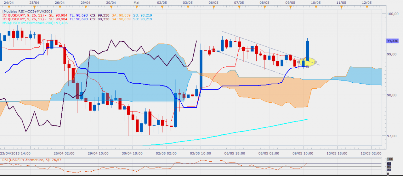 Parallèlement cela implique que chinkou ne pénètre pas le nuage. Cette cassure pourrait nous entrainer vers 1.33, 1.34 .....