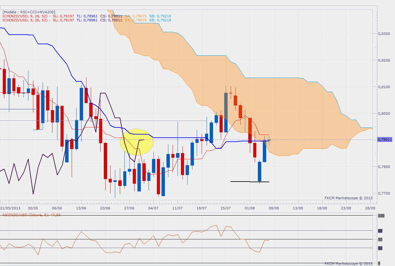 NZDUSD daily , impossible à acheter tant que chinkou ne casse pas sa kijun.